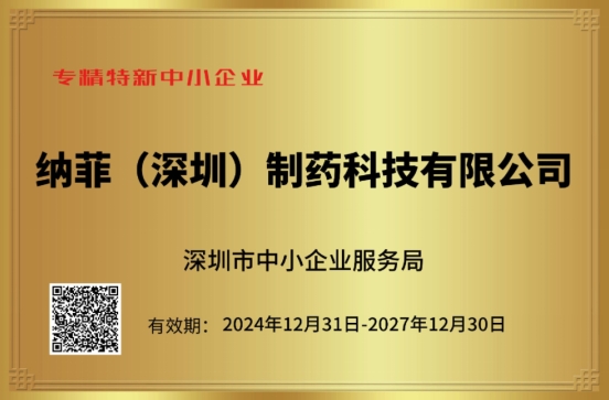 納菲(深圳)制藥科技有限公司(簡稱“納菲制藥”)首次榮獲國家高新技術企業證書和深圳專精特新中小企業認定。